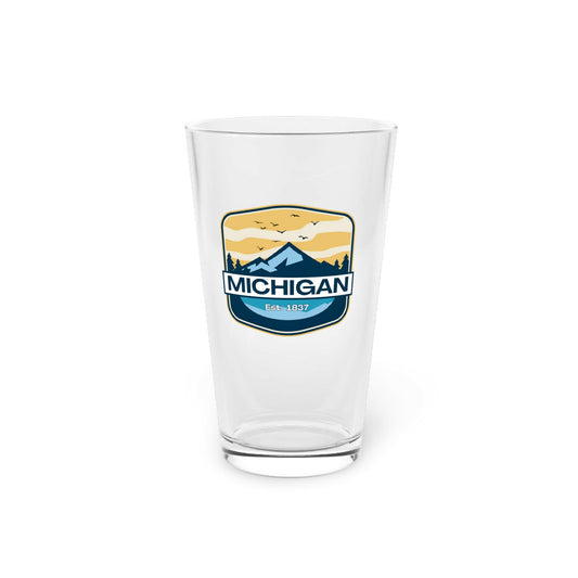Michigan Adventure Est. 1837 Badge Pint Glass, 16oz